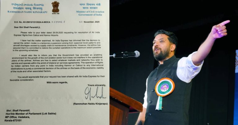 നിര്ത്തി വെച്ച എയര് ഇന്ത്യാ സര്വീസുകള് പുനരാരംഭിക്കും; ഷാഫി പറമ്പില് എംപി November 30, 2025 No Comments