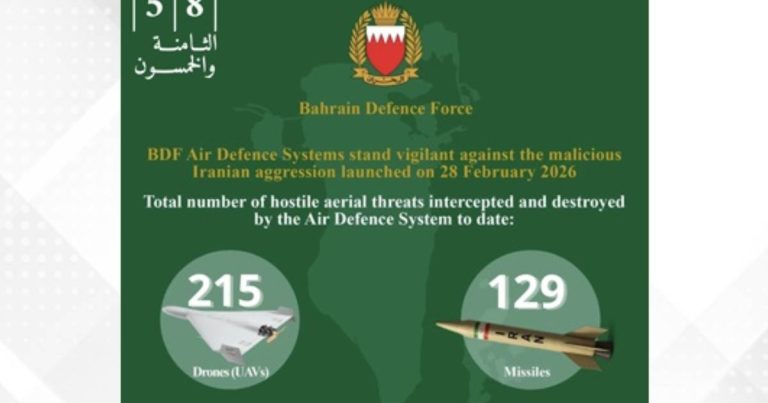 BAHRAIN ഇറാന്റെ ആക്രമണം ആരംഭിച്ചത് മുതല് ബിഡിഎഫ് 129 മിസൈലുകളും 215 ഡ്രോണുകളും തകര്ത്തു March 16, 2026 7:01 pm