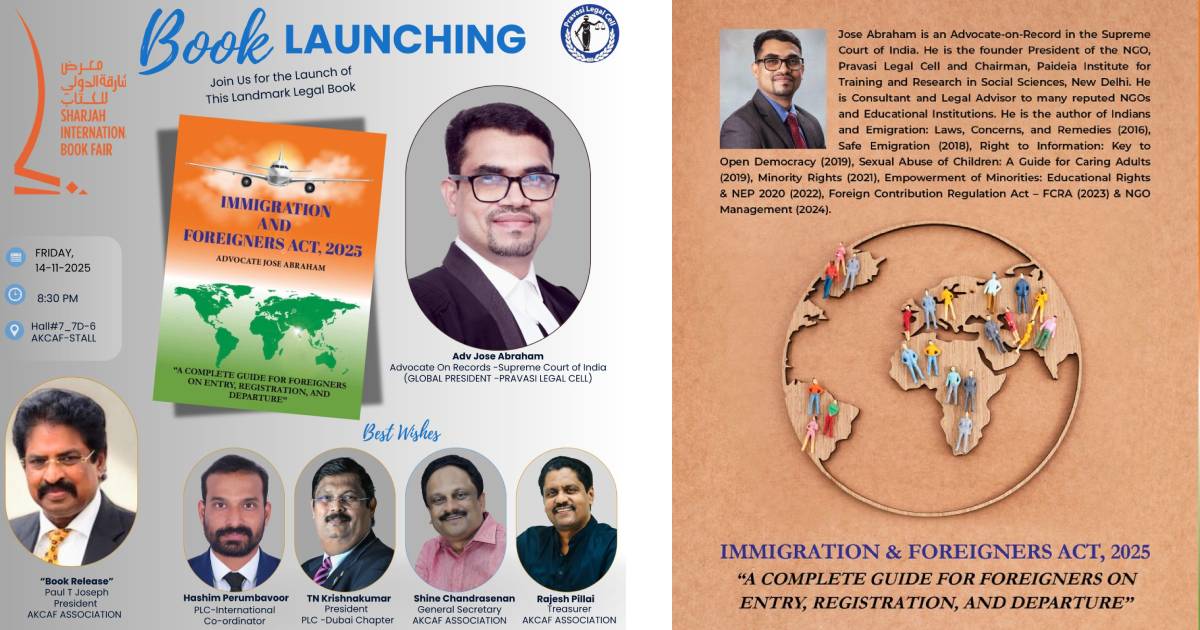 BAHRAIN ‘ഇമിഗ്രേഷന് ഫോറിനേഴ്സ് ആക്റ്റ്’ പുസ്തക പ്രകാശനം നവംബര് 11ന് ഷാര്ജയില് Admin November 10, 2025 5:05 pm