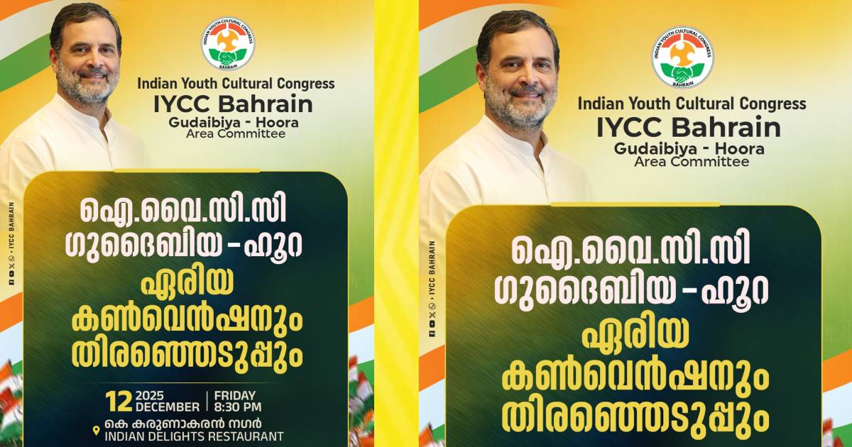 BAHRAIN ഐവൈസിസി ഗുദൈബിയ- ഹൂറ ഏരിയ കമ്മിറ്റി കണ്വെന്ഷനും തെരഞ്ഞെടുപ്പും Admin December 11, 2025 6:28 pm