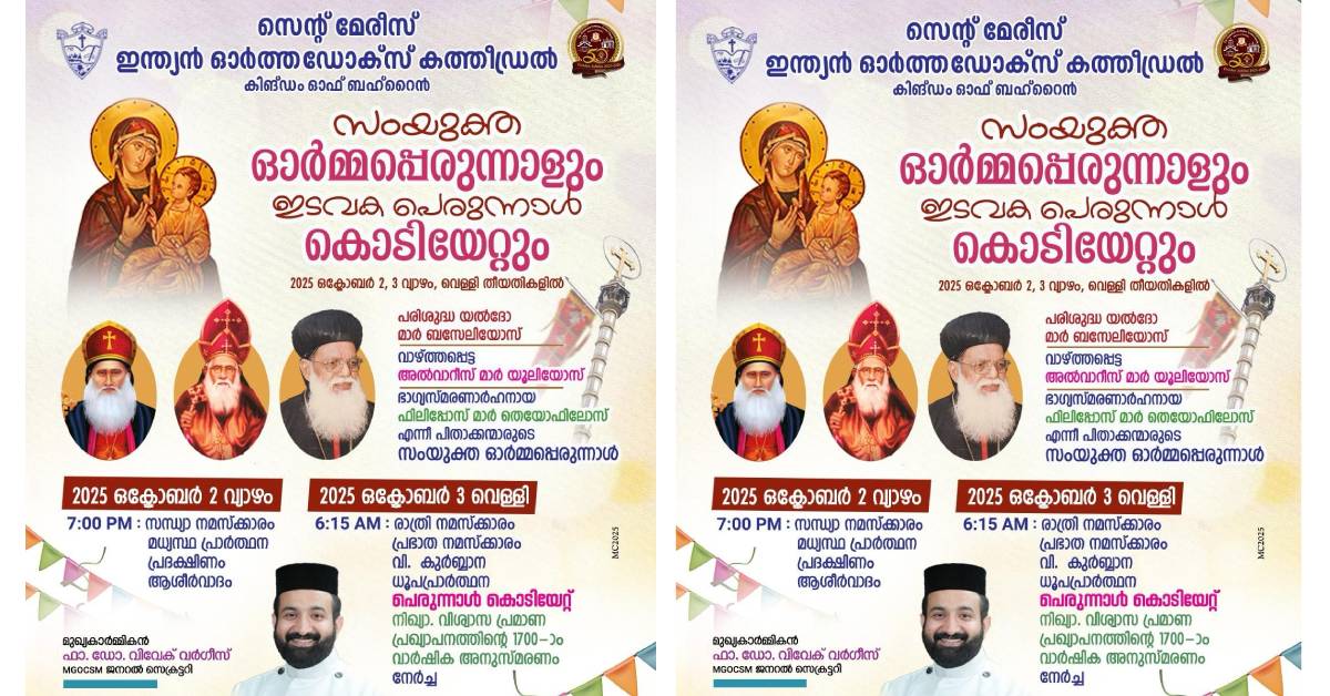 BAHRAIN ബഹ്റൈന് സെന്റ് മേരീസ് കത്തീഡ്രലില് 67-ാംമത് പെരുന്നാളിന് കൊടിയേറി Admin October 5, 2025 6:36 pm