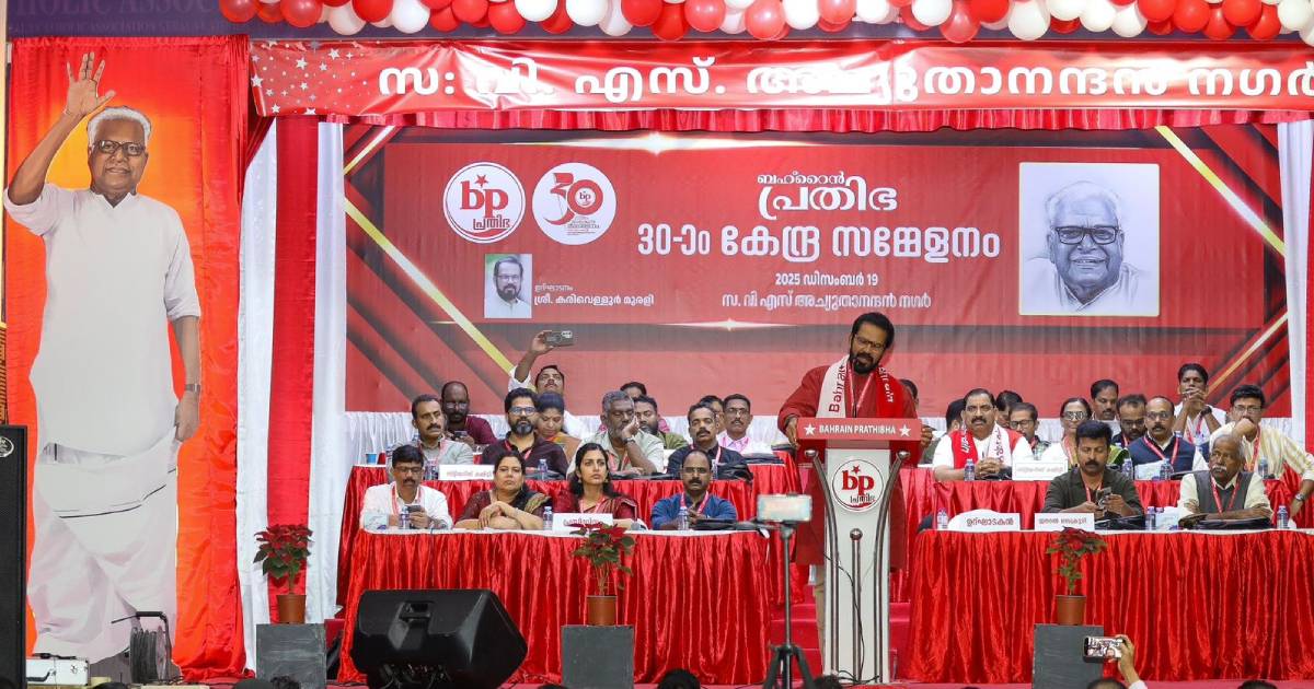 BAHRAIN ബഹ്റൈന് പ്രതിഭയുടെ മുപ്പതാം കേന്ദ്ര സമ്മേളനം കരിവെള്ളൂര് മുരളി ഉദ്ഘാടനം ചെയ്തു; മഹേഷ് കെ വി പ്രസിഡന്റ്, സുലേഷ് വി കെ ജനറൽ സെക്രട്ടറി, നിഷ സതീഷ് ട്രഷറർ Admin December 20, 2025 8:21 pm