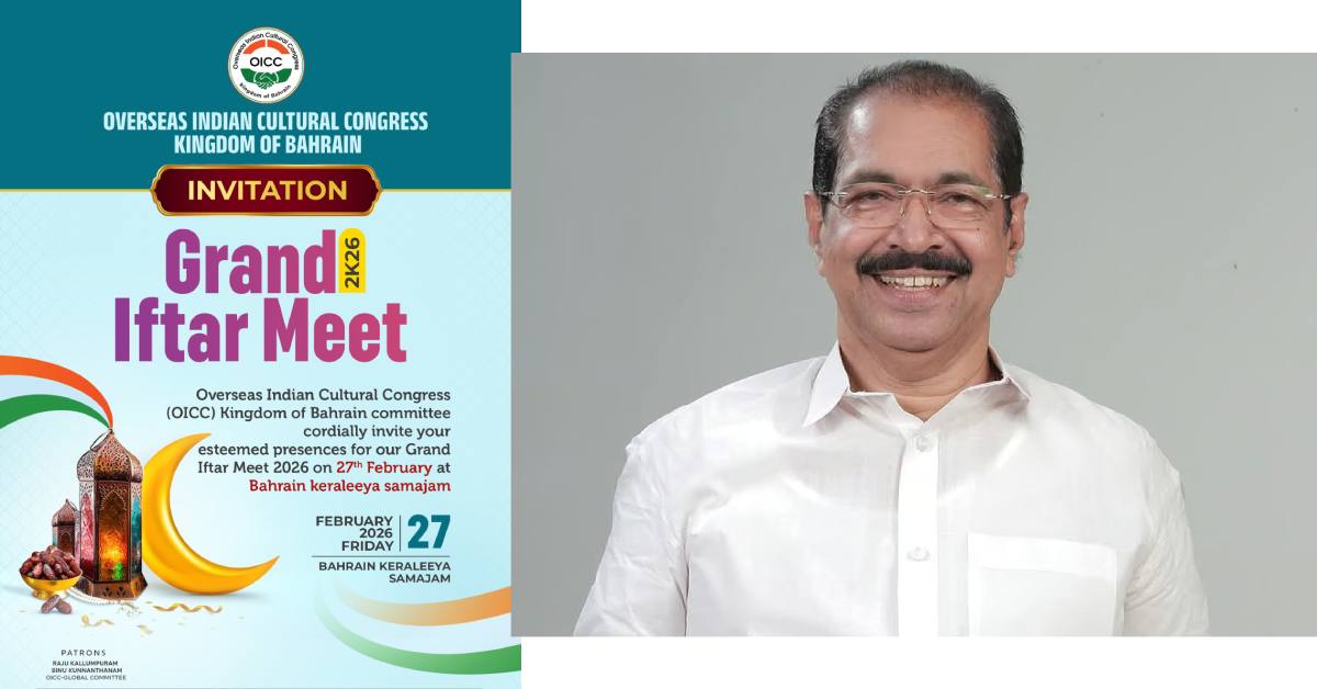 BAHRAIN ഒഐസിസി സമൂഹ ഇഫ്താർ ഇന്ന് കേരളീയ സമാജത്തിൽ; കെ.പി.സി.സി പ്രസിഡന്റ് അഡ്വ. സണ്ണി ജോസഫ് മുഖ്യതിഥി Admin February 27, 2026 1:13 am