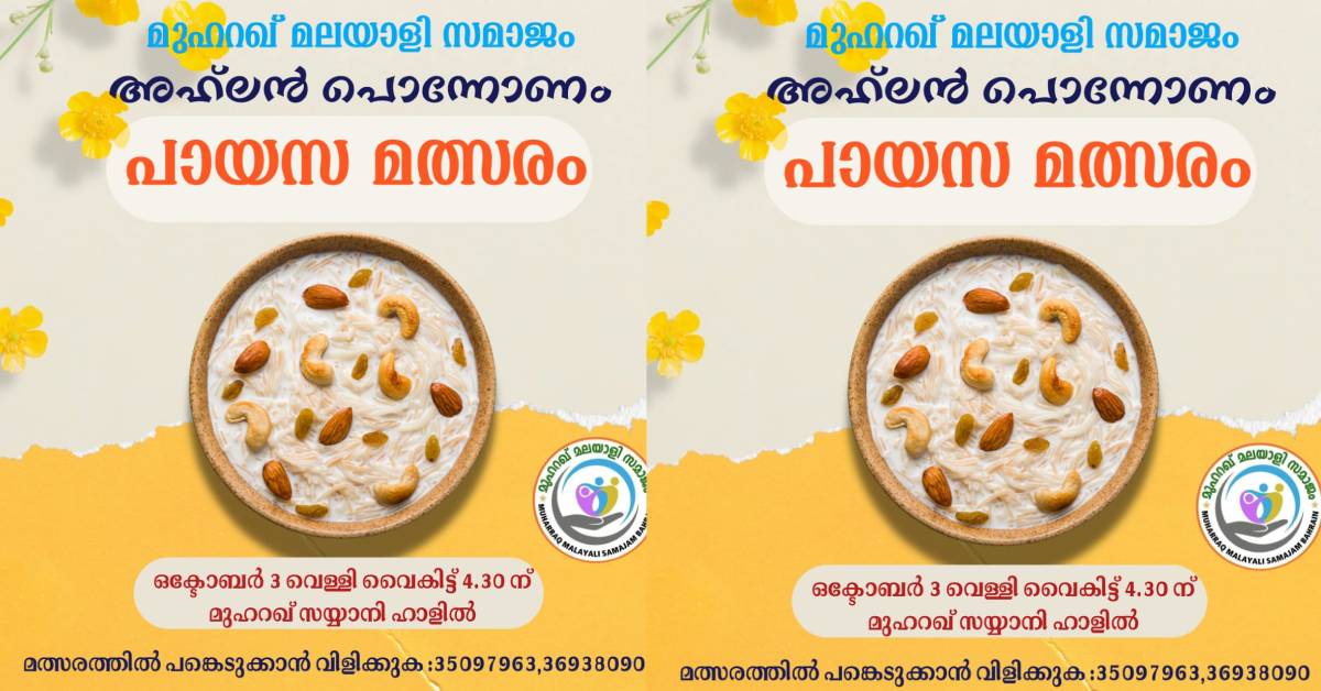 BAHRAIN ശ്രാവണം ഓണാഘോഷം; തിരുവാതിരക്കളി മത്സരവും പായസ മത്സരവും സംഘടിപ്പിച്ചു Admin September 15, 2025 2:50 pm