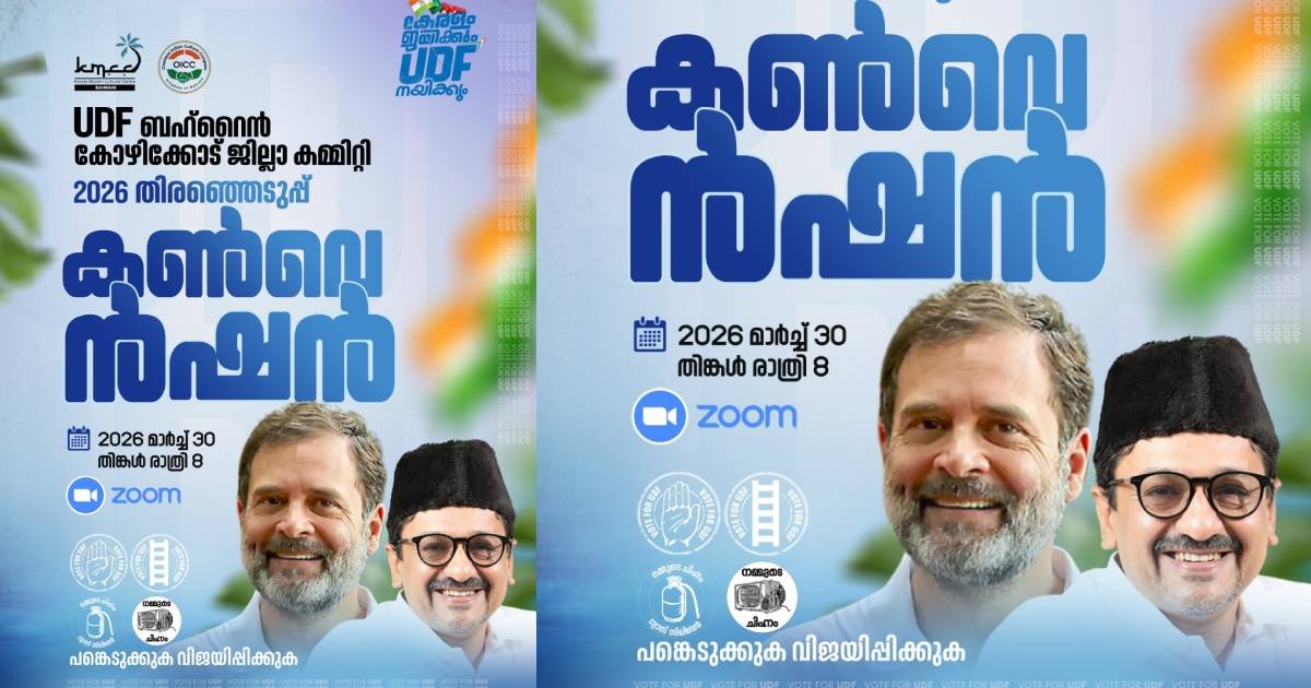BAHRAIN ബഹ്റൈന് കോഴിക്കോട് ജില്ലാ യുഡിഎഫ് കമ്മിറ്റി തെരഞ്ഞെടുപ്പ് കണ്വെന്ഷന് സംഘടിപ്പിച്ചു Admin April 4, 2026 6:17 pm